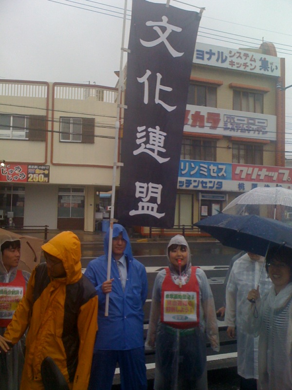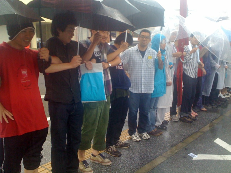 嵐のような雨の中、沿道からも多くの飛び入り参加があり、約300名でデモを打ち抜きました!!