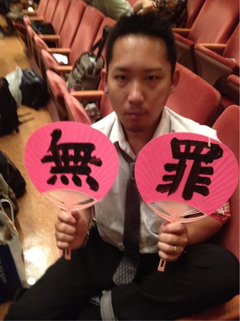 The struggle of united students, workers, people and foreign friends brought us this acquittal. So we want to share the victory with you. Let’s stand up like Hosei struggle!
