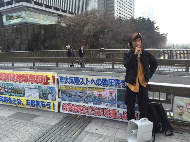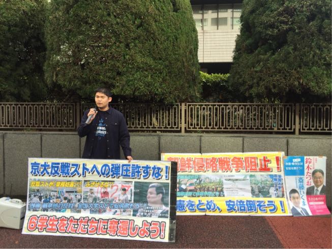 街頭は安倍政権打倒であり、山極総長打倒で全国反戦ストライキを求めています。