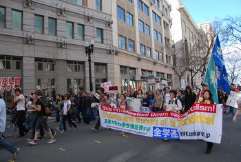 3000人のデモ! 日本の訪米団も中心でデモ!