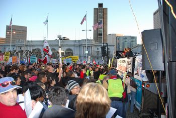 カリフォルニアに移動して、労働者と合流。1万人集会