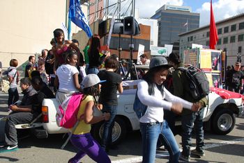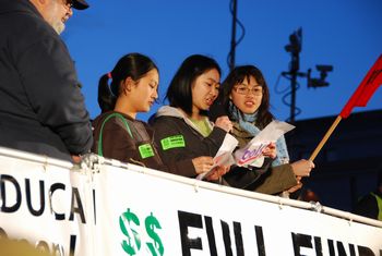 ●マスコミでは、「全州で100万人が参加」と報道。カリフォルニア以外にも、32の州で200ヶ所以上の連帯行動が取り組まれています。アメリカにおいて、教育をテーマにこれだけの規模の行動が取り組まれたのは初めて、とのこと。