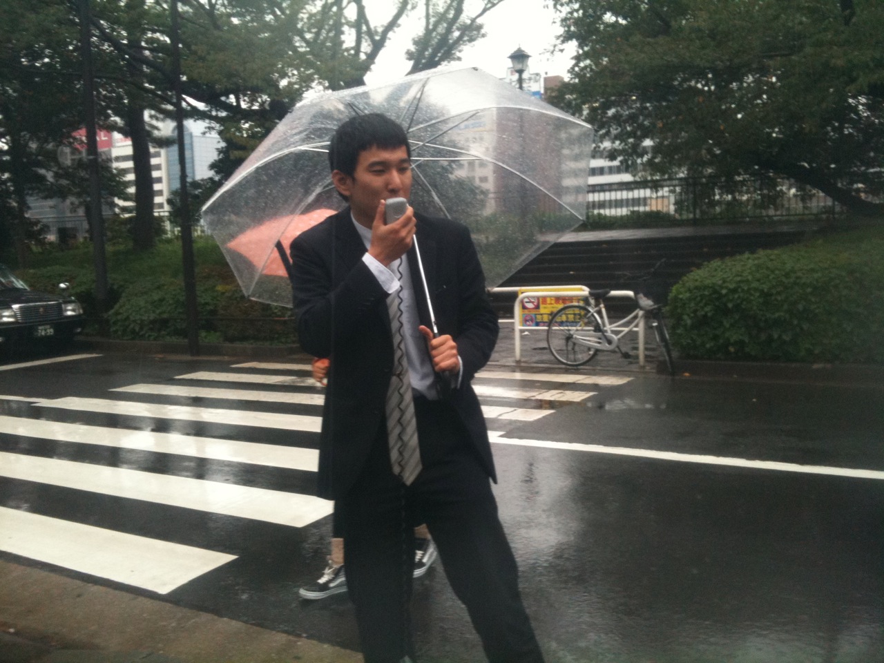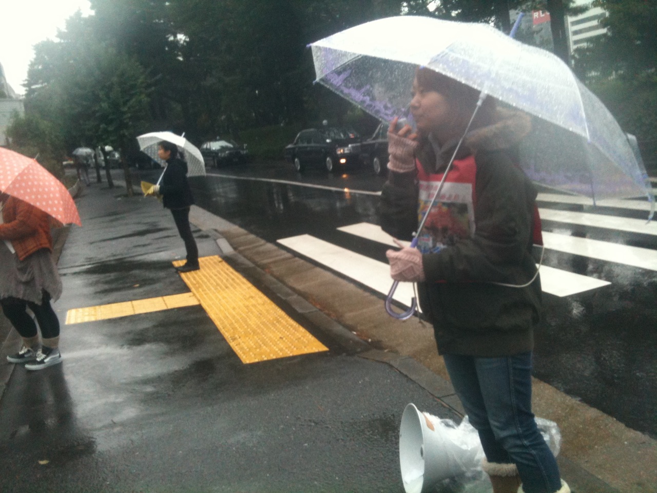 本日昼は豪雨にも関わらず、文連・全学連はキャンパスに断固登場し、明日のデモに向けて団結ガンバローをやったら何と、キャンパスにいる法大生が唱和するという画期的事態が生まれています!!