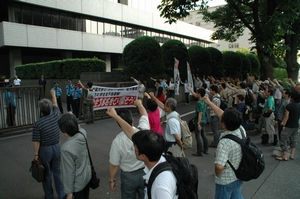 地裁前の総括集会では、仲間の母親が発言「私は平凡な主婦でしたが、きょう傍聴してびっくりした。あまりのひどさ、それに抗議するひとたちに拍手をしただけで私も退廷させられました。社会を変えようとした子どもに誇りをもっています。」と発言。闘いの中で団結は強まっている。