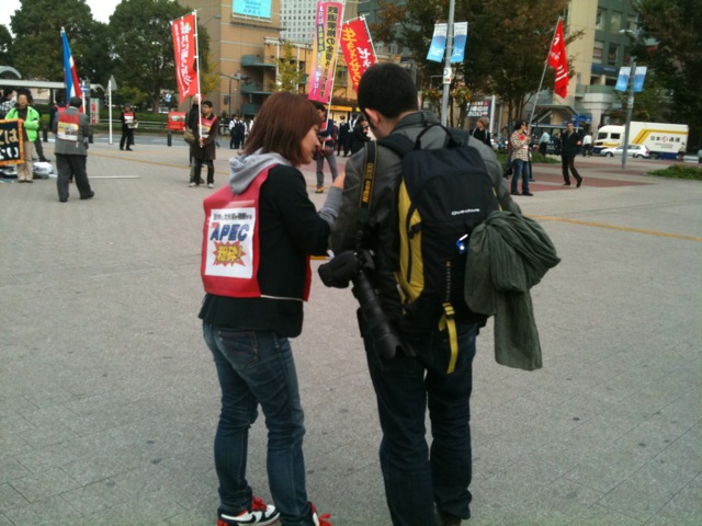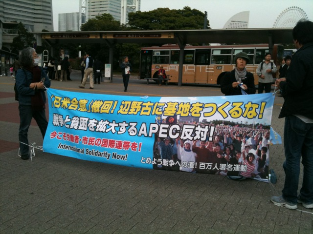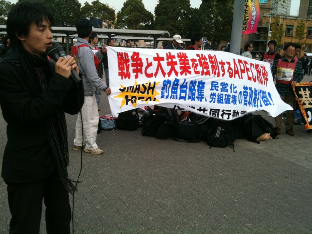 只今、明日の第二弾APEC粉砕デモに向けて再び桜木町で街頭宣伝やってます!