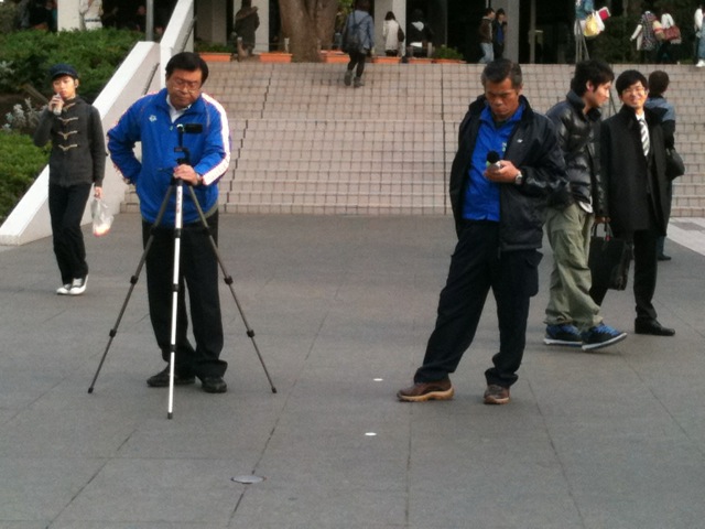 三脚カメラと集音マイクを持って弾圧と倉岡さんへの新たな処分を狙っています。
