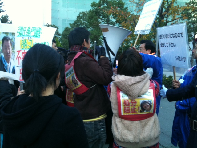 事実、法大当局は先の右翼の授業中の演説には何も言いませんでした。