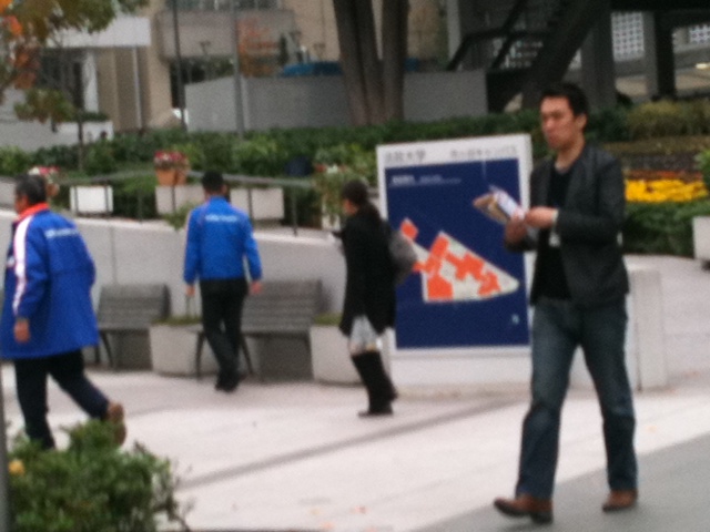 ガードマンの後ろでアリバイ的にちょろっと掲げるのみで、あとは何と弾圧看板をキャンパスマップの後ろに隠してベンチでうなだれているだけでした。