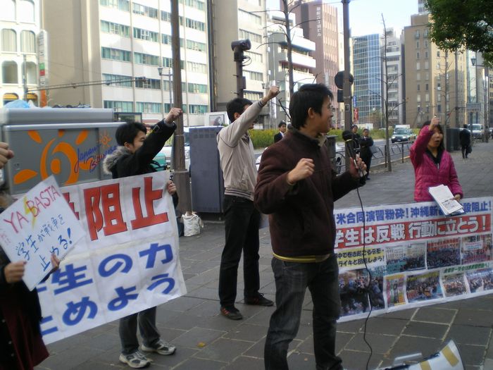 反戦の砦・広島大学でも9日、「朝鮮侵略戦争阻止! 菅政権打倒!」の反戦集会が行われた。訴えを聞いてビラを受け取りに来る学生もおり、ビラの受け取りは後期最高に!