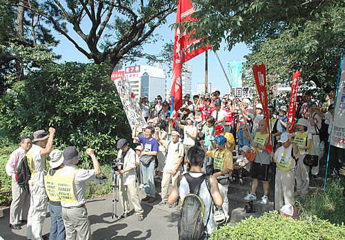8月15日は闘争の日です。法政大のすぐ裏には、あの靖国神社があります。靖国神社は、朝鮮・中国-アジア侵略戦争を正当化し、「英霊」として、祀っているところです。福田政権や右翼勢力は、靖国神社参拝をテコに、さらなる戦争、改憲をすすめようとしています。この靖国参拝に対して、歴史的に法大生は闘ってきました。15日は、法大の門前から靖国参拝阻止!福田打倒のデモが始まります! デモには、韓国・民主労総の代表団も合流します。右翼勢力の妨害はねのけ、断固デモを貫徹しましょう! ぜひ結集をお願いします!