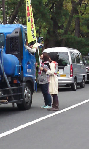 ※三枚目の写真:トラック労働者がビラを受け取ってくれました!