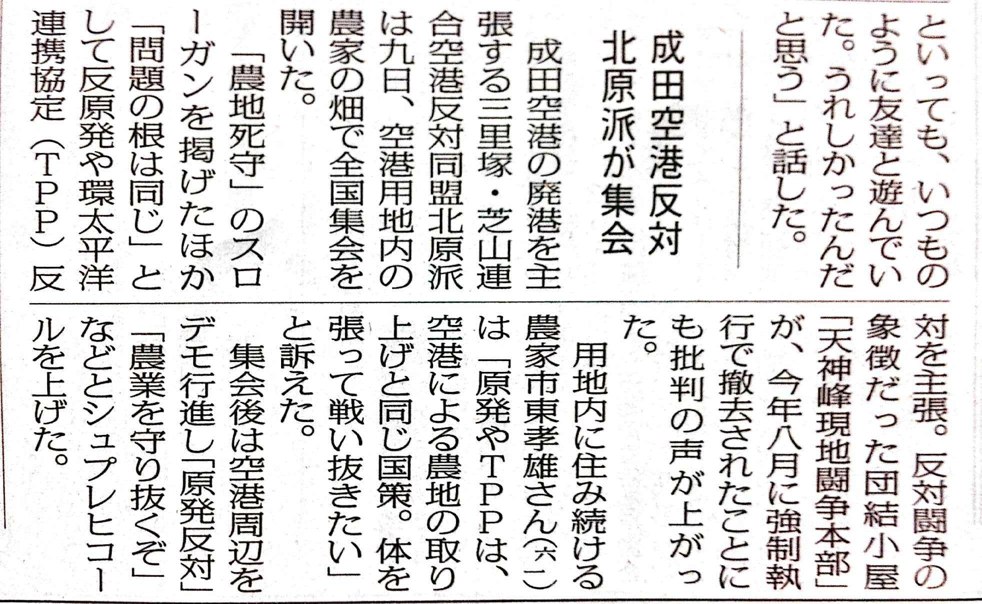 昨日の三里塚集会の記事が載ってました!
