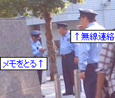 署名に応じたり、私たちと話している学生がいるとメモをとり、無線連絡する警備員