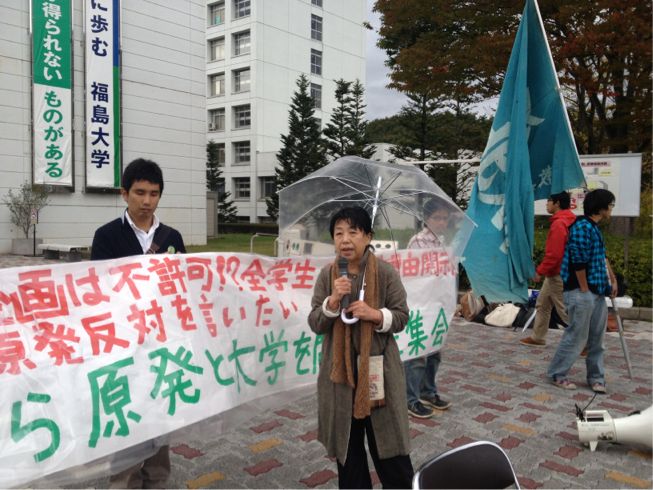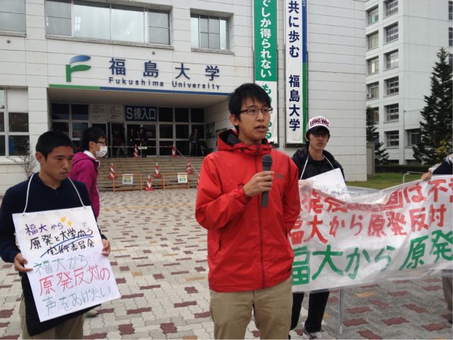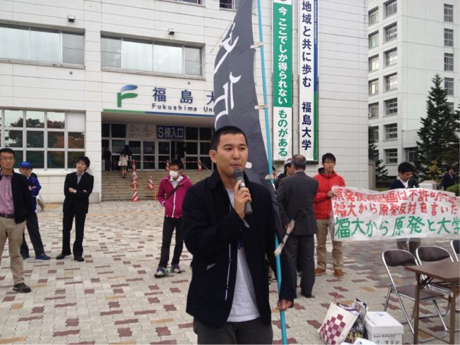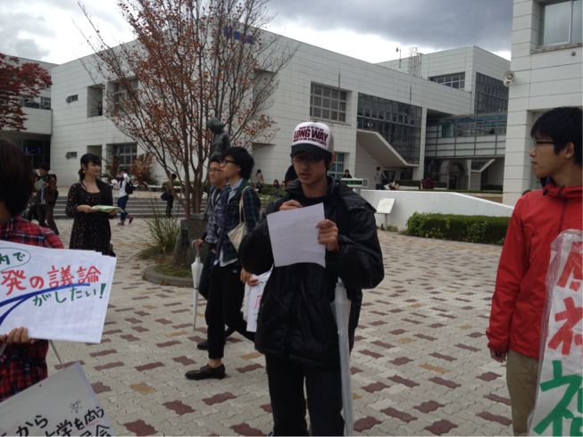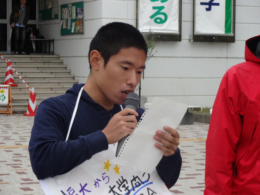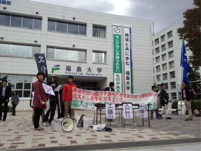 福島大生有志の主催で、事前に福島大当局に提出した申し入れ書の回答を求める集会が行われました!!