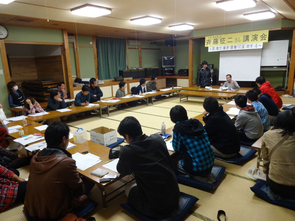 夕方には元原発労働者労働組合分会長の斎藤征二さんをお招きしての講演会を行いました!!