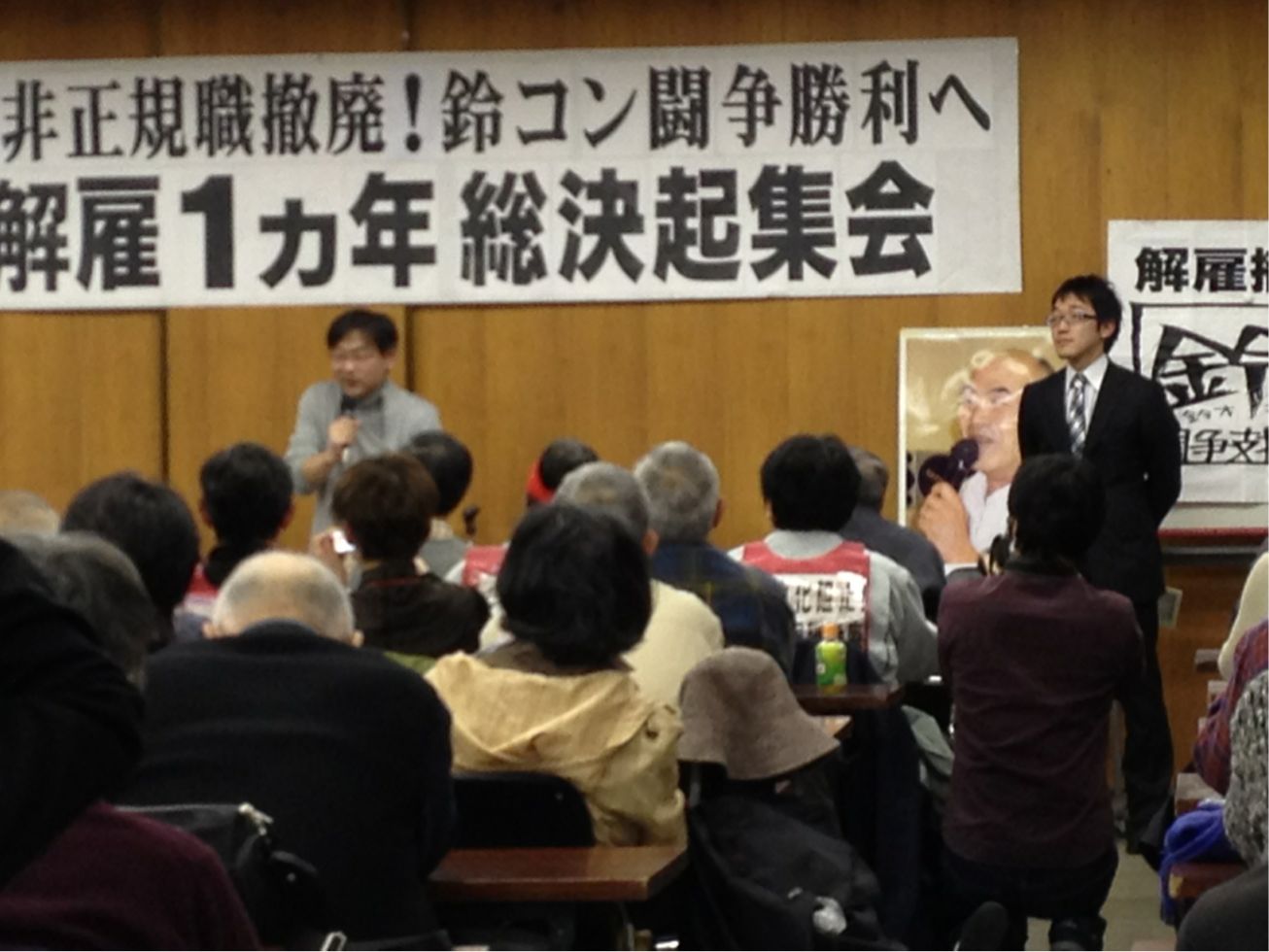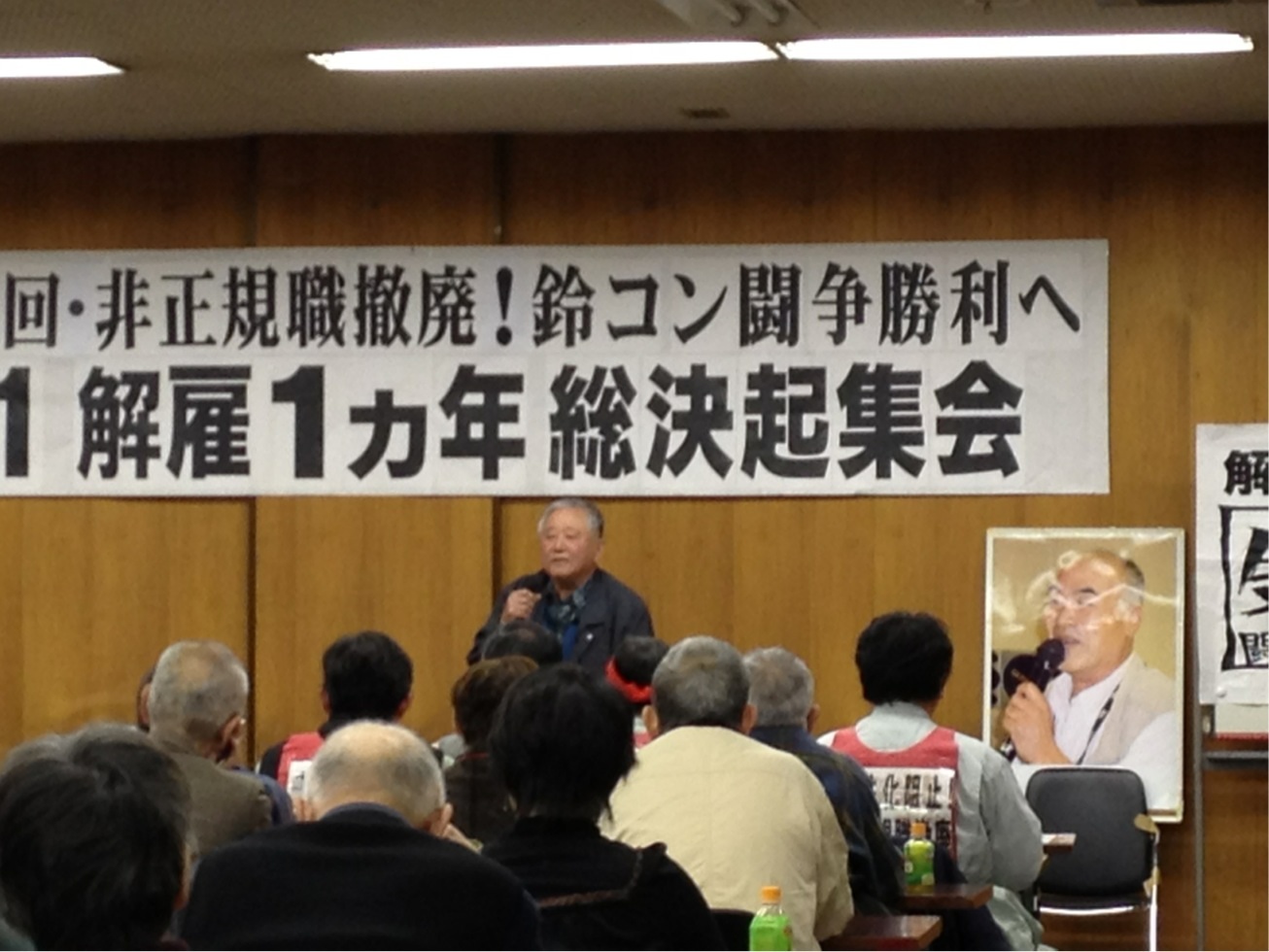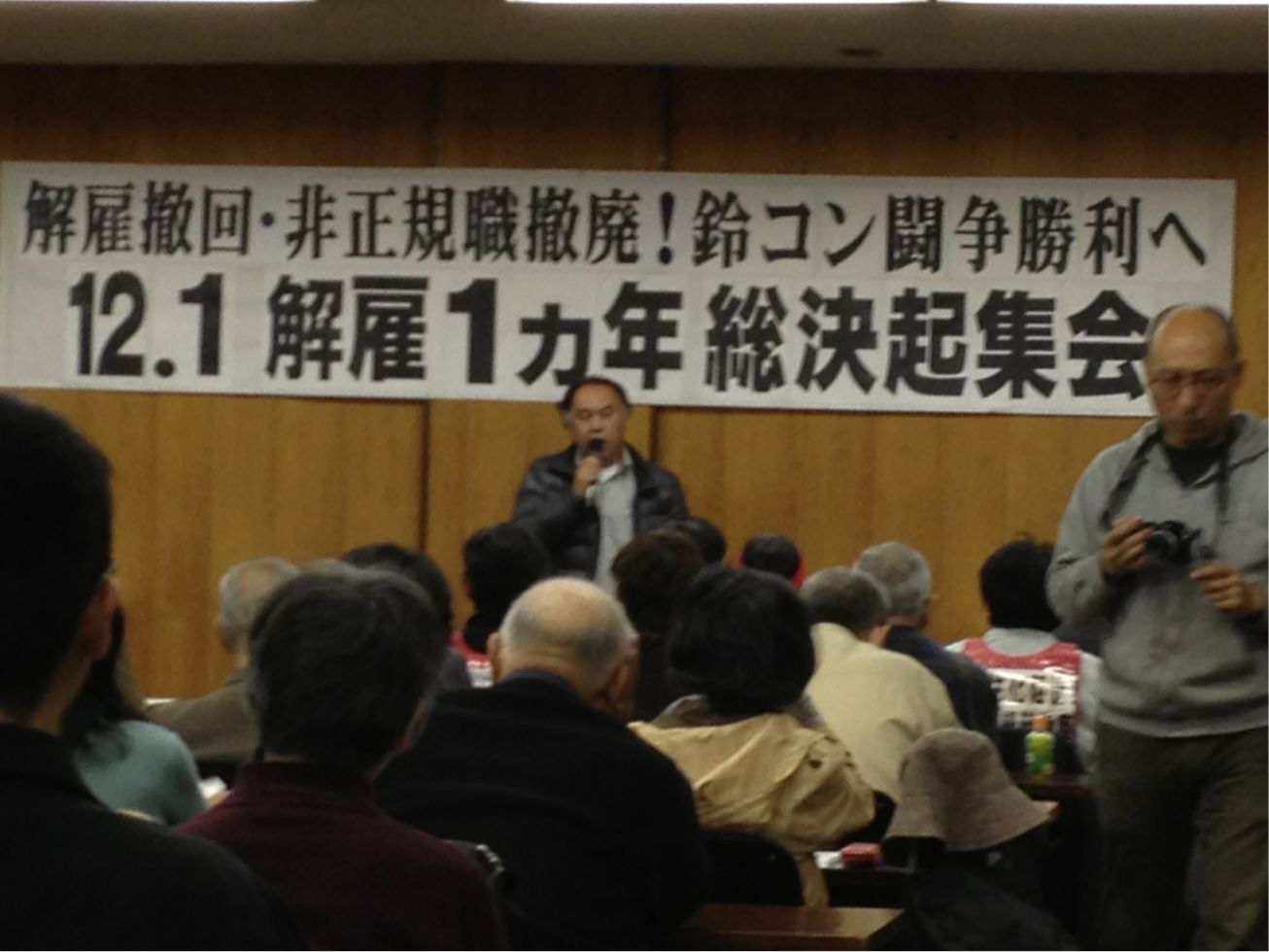 「鈴コン共闘会議の闘いは、われわれの解雇撤回・現職復帰とともに、今、失業・解雇・非正規化の攻撃に対して立ち上がり始めている多くの仲間との団結をどんどん進めていく闘いです。」