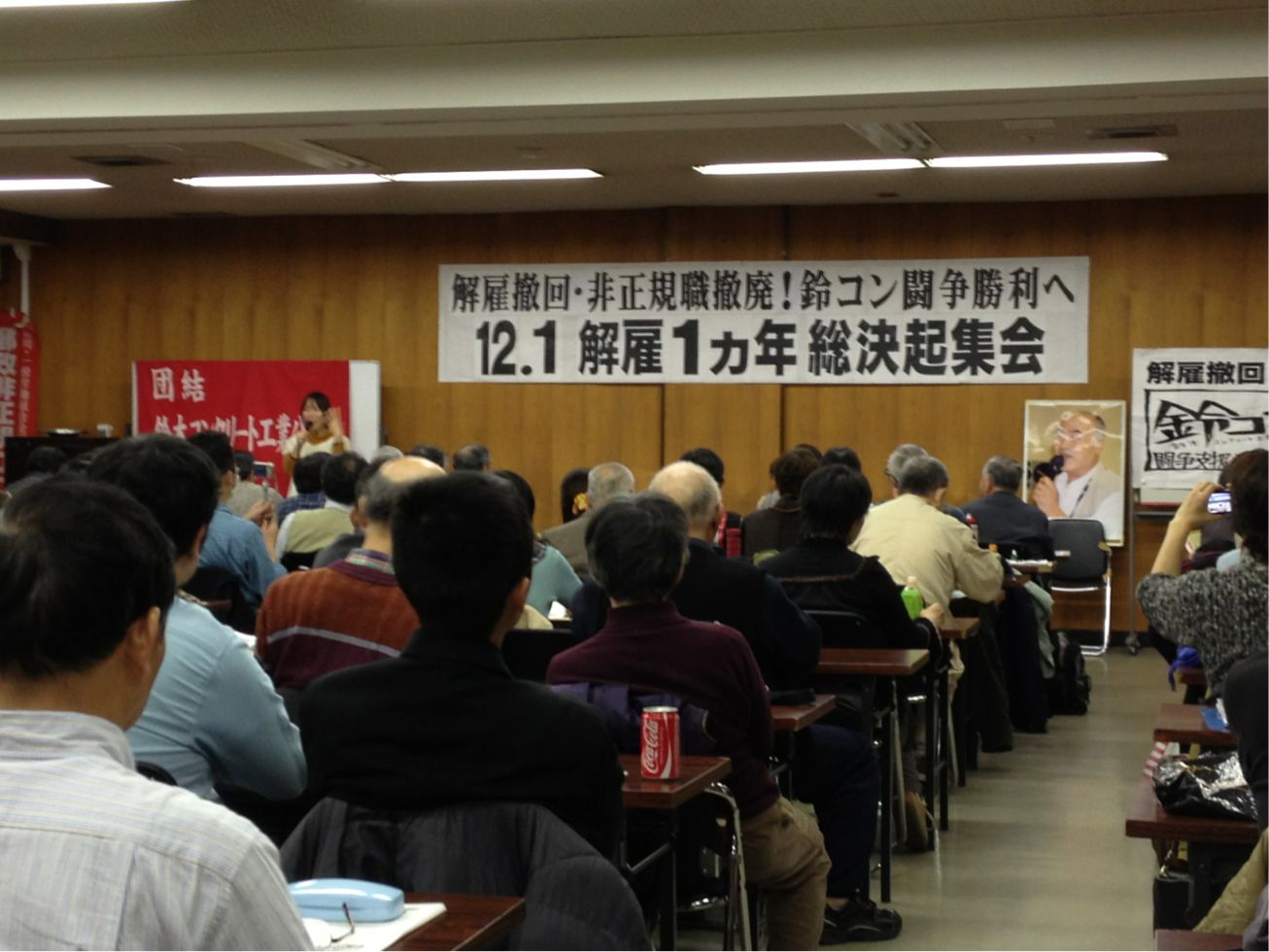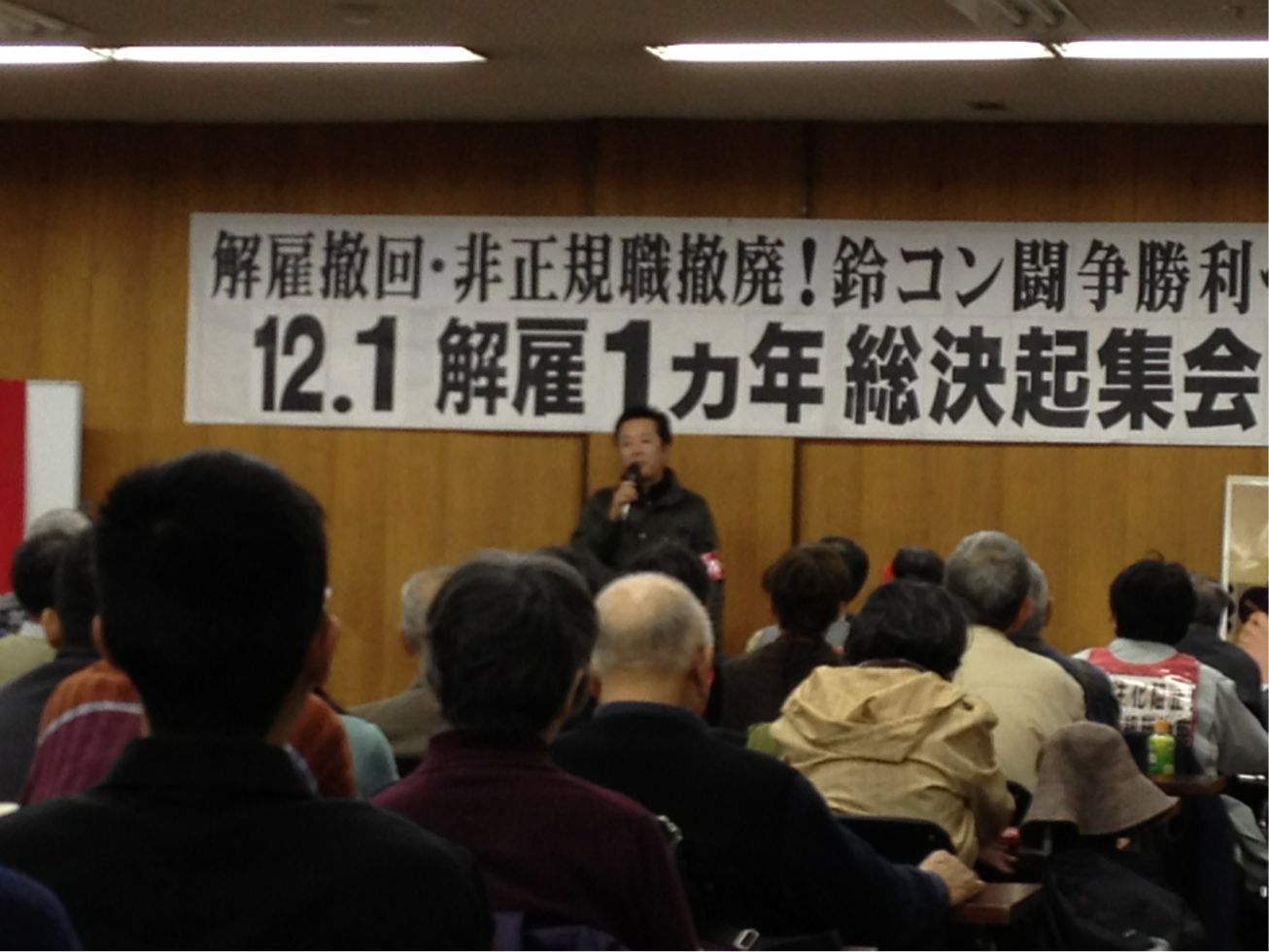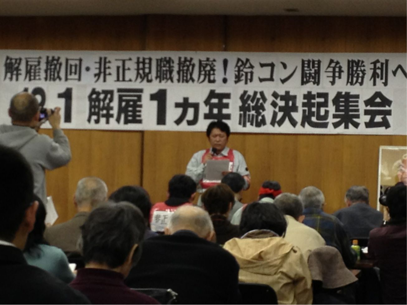 「鈴コン共闘会議の闘いは、われわれの解雇撤回・現職復帰とともに、今、失業・解雇・非正規化の攻撃に対して立ち上がり始めている多くの仲間との団結をどんどん進めていく闘いです。」