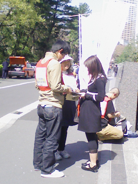 校門前にて集めています。現在法大で集めた署名は239筆です。