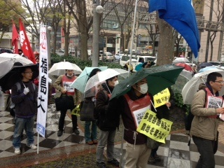 デモ終了後、千葉地裁を包囲し、「多見谷裁判長は農地を奪うな!」と怒りを叩きつけました。