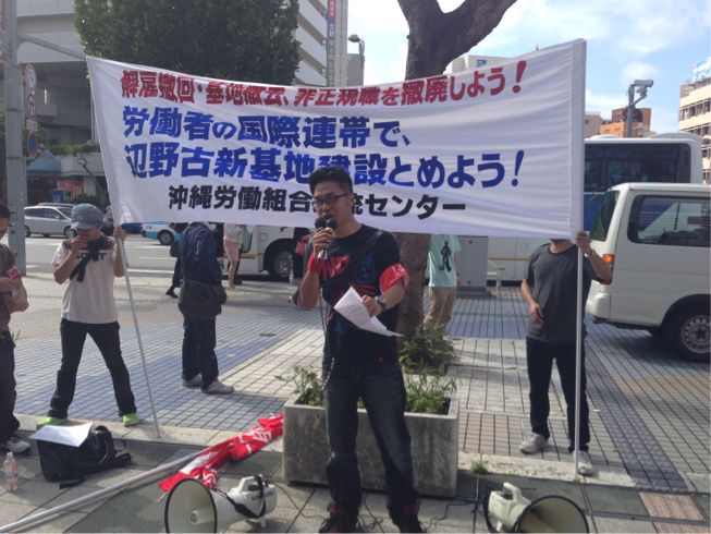 デモ前の沖縄労働者・富田晋君アピール!!