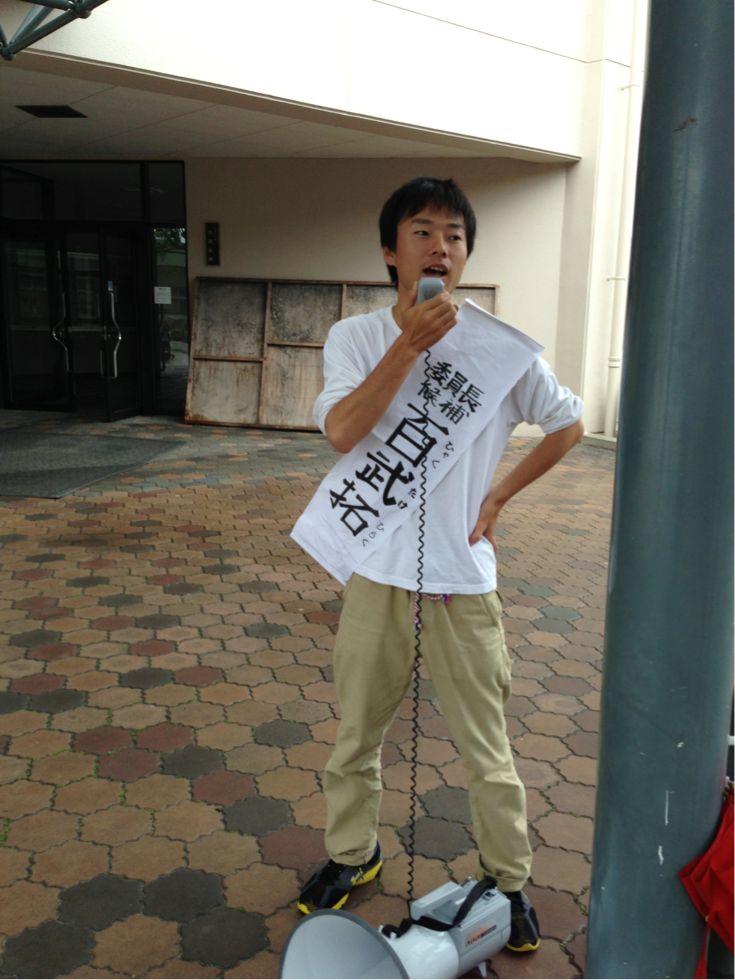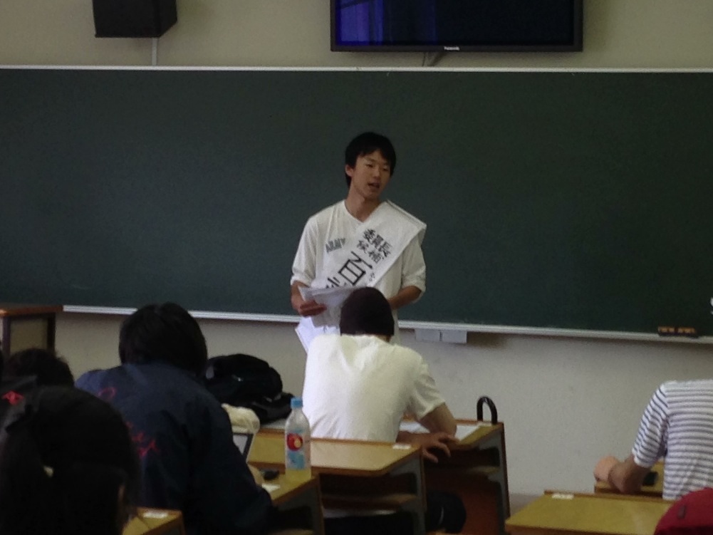 キャンパスで訴える百武くん!!