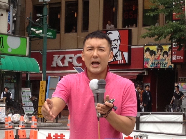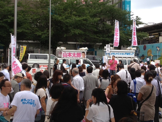 ▼中野駅前で演説する山本太郎さん!