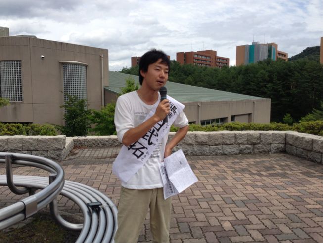 駆けつけた京大同学会新委員長・大森くんアピール!