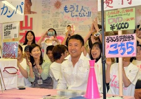 東京選挙区で当選確実になった新人の俳優、山本太郎氏は「浮かれるわけにいかない。(当選で)スタートラインに立った。いばら道はこれからだ」と気を引き締めた。
