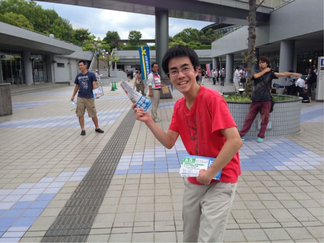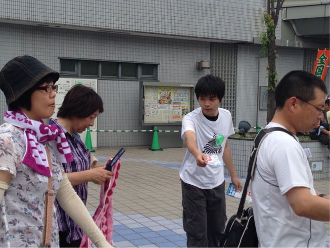 原水禁大会の会場前でビラまきにも決起!
