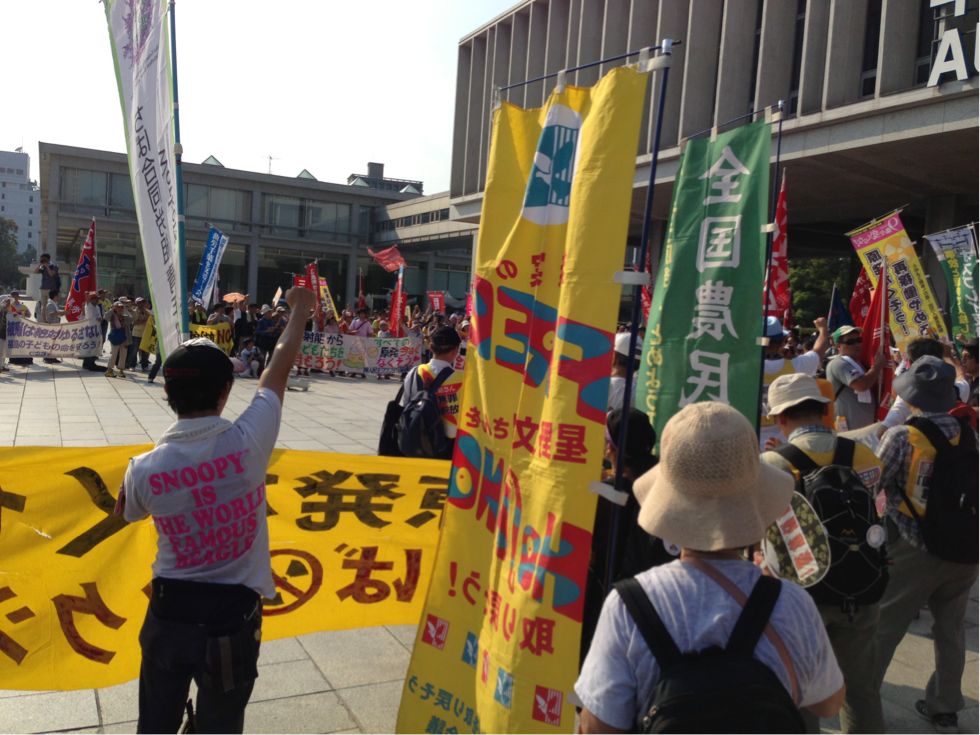 最後に平和記念資料館前で団結ガンバロー!