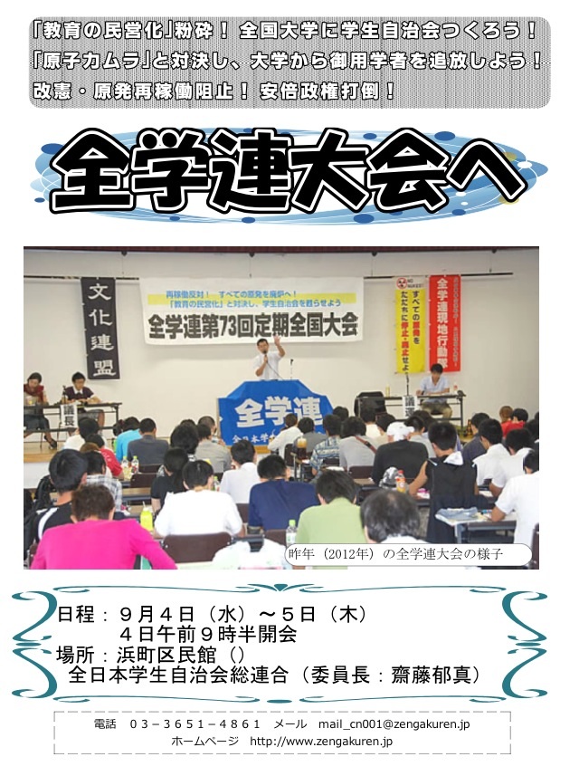9/4〜5全学連大会へ!