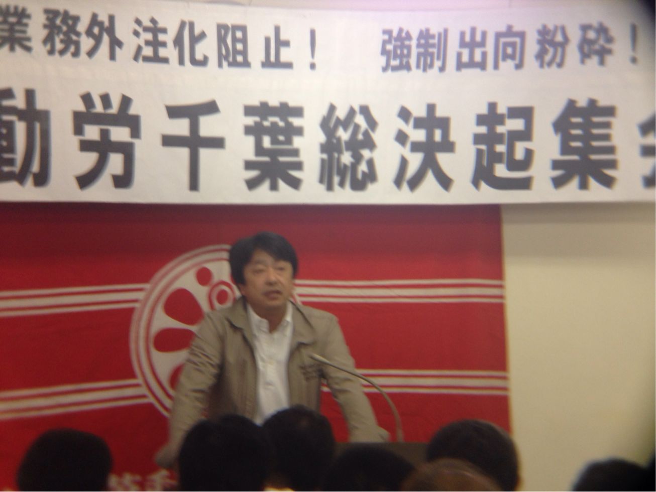 明日からストライキに決起する幕張支部の山田支部長アピール!
