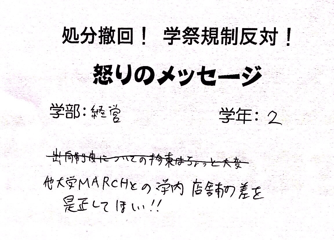 続々集まる学祭規制反対メッセージ!!