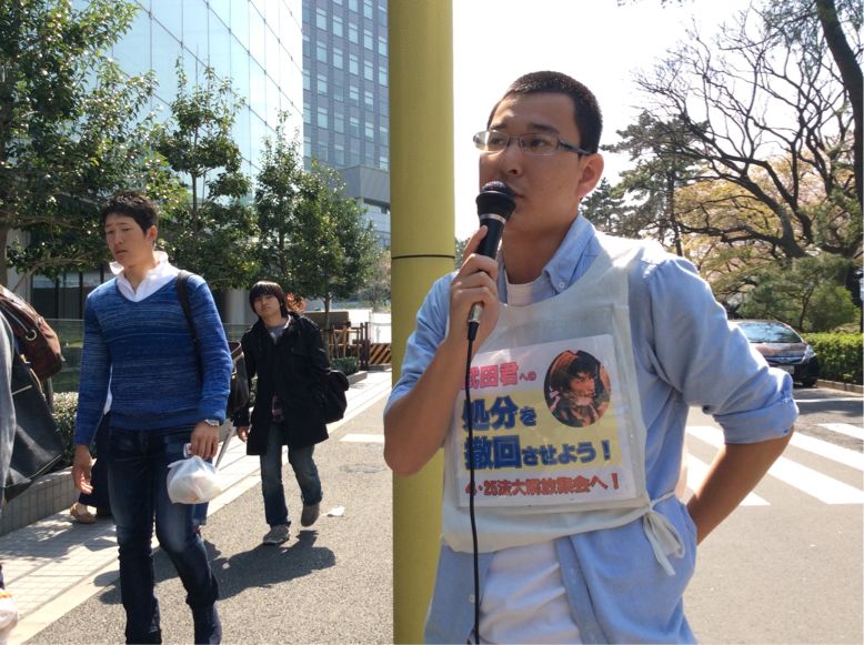 新入生のみなさん。処分撤回の署名を集めています。ぜひ署名してください。大学当局は我々と話すななんてことを言ってますが、まずは話すところから始めましょう。よろしくおねがいします。』