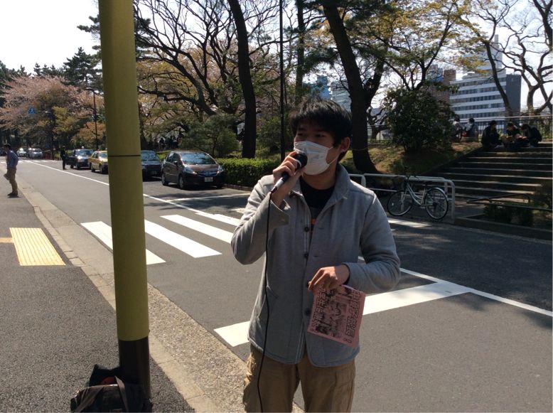 みなさん。4月25日に僕の処分撤回・規制反対のデモを行います。一人でも多くの学生が集まってほしい。田中優子総長への質問状を我々は再三にわたって送っています。一回も回答がありません。そして田中優子は「大学は自由なもの」なんてほざいてますが、あの正門の様子を見てください。工事してますよね。あれ学生は賛成してませんからね。知らない間に勝手に工事が決められている。そして新歓が破壊されている。あそこにいる浅野(法大職員)は、我々のアジ演説が少しでも授業に食い込むと「授業妨害だ」なんてほざいていますが、授業中にやっている工事には一切言わない訳ですよ。「学ぶ権利」だなんてちゃんちゃらおかしい。本当に学びたい学生を、批判したという理由で外に追い出してきたのはこいつらです。