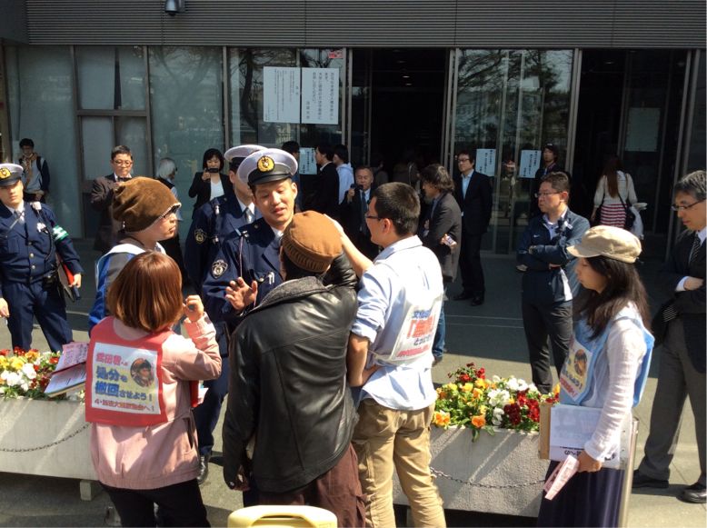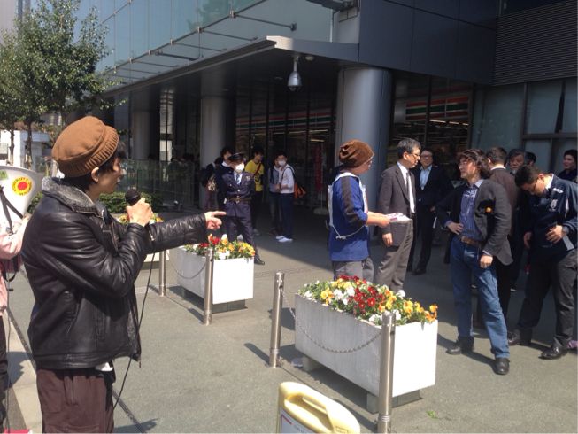田中優子総長は秘密保護法反対、原発反対、戦争させないなんてことを言っているわけです。しかし足下の大学でやっていることは何か。無罪の学生をパクらせたのに謝罪のひとことすらない。大学を批判すればああやって弾圧職員がカメラを向けてくる。盗撮する。言っていることとやっていることがまるで違うじゃないですか。こういう口先だけのリベラルを装った知識人が、左の側から安倍政権を補強して、学生を低賃金・非正規職の地獄にたたき落とそうとしているわけです。何としても欺瞞は徹底的に暴かないといけません。