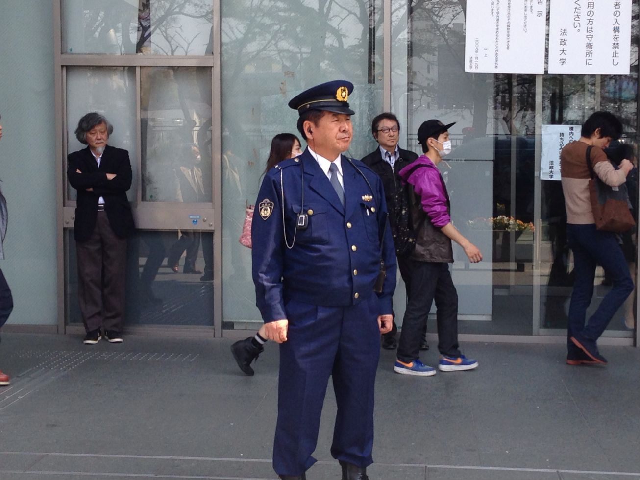 警察権力が外濠校舎前で当局を防衛!