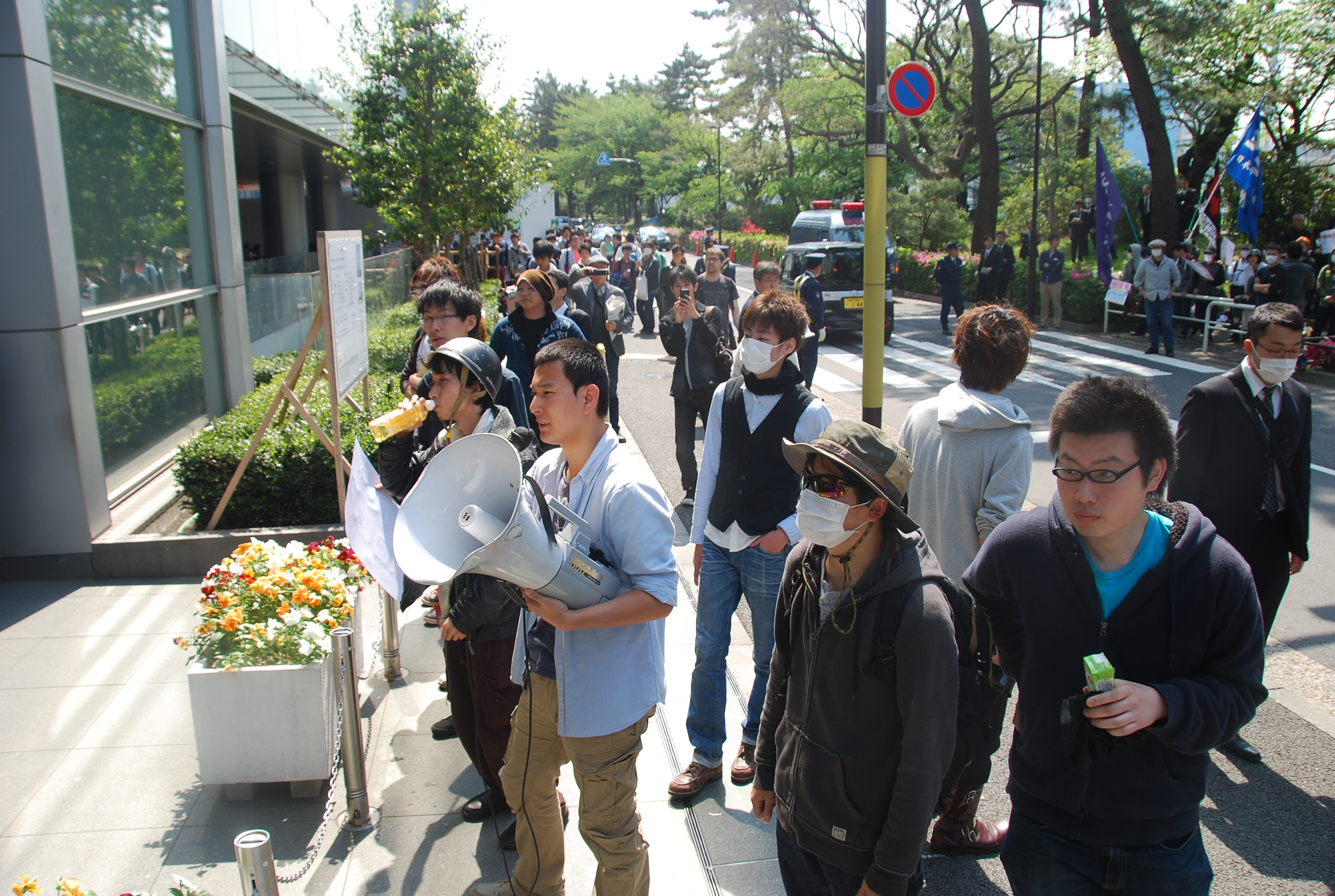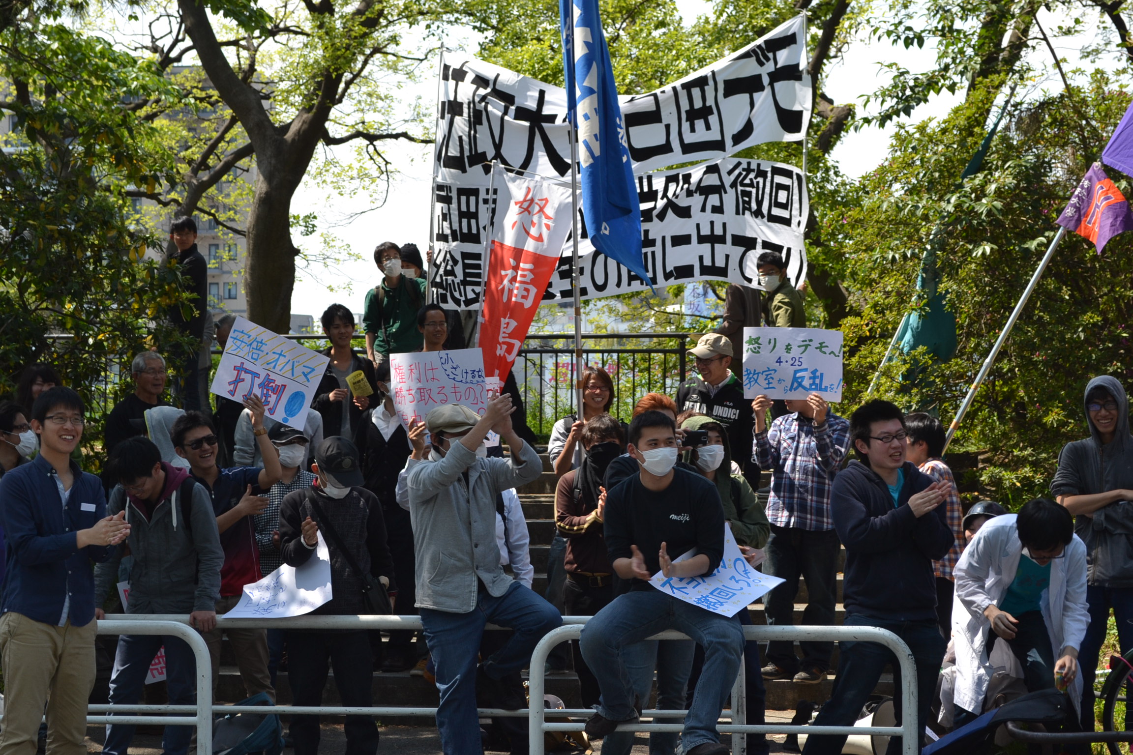 首都圏の学生の感動的アピールに盛り上がる参加者。