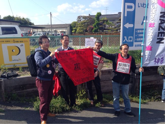 郵政非正規ユニオンとNAZEN神奈川から檄布贈呈!