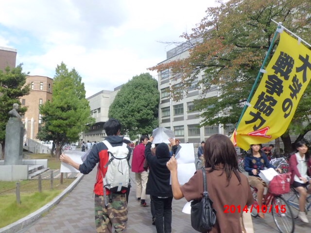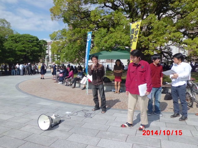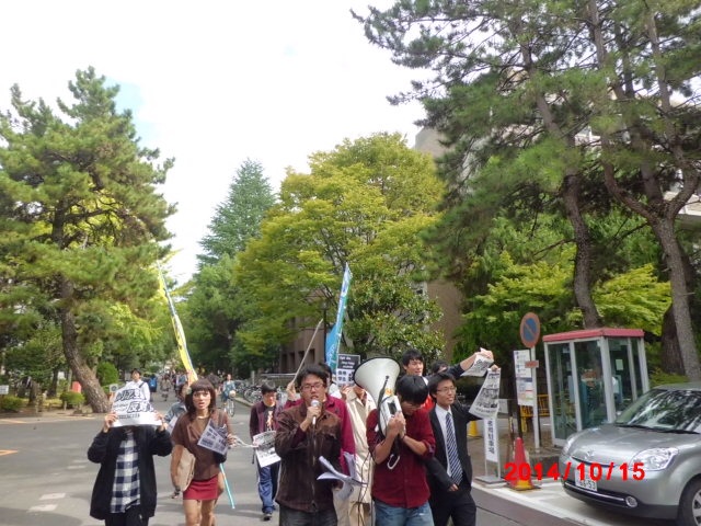 本日、昼休みにクスノキ前で集会をしました!同学会や全学連の学生の発言の後、学内デモを貫徹!前日の申入書の回答では、ヤマギワ総長がゼロ回答。これが学生との合意形成を目指すヤマギワの本性だ!このヤマギワ体制を学生の団結で打倒するぞ!しかも、学内デモの道中に、あの「ニコニコしてたら放射能は寄ってこない」と発言したヤマシタ俊一に遭遇!ヤマシタを痛打するデモにもなった!