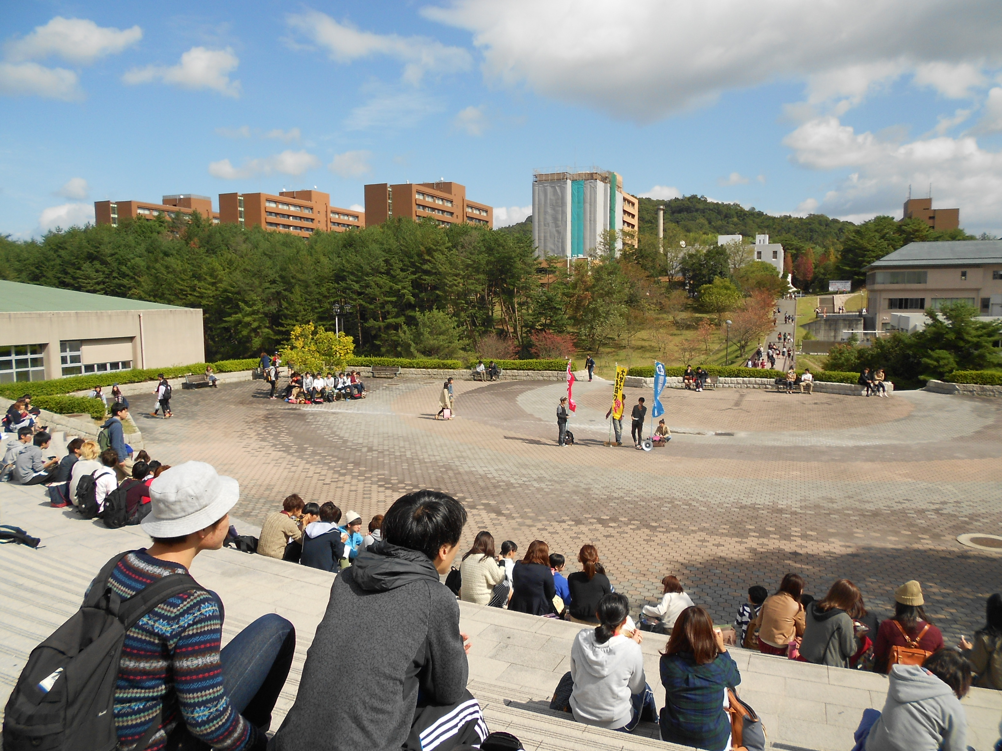 観光シーズンで修学旅行生も多く、学内の注目は圧倒的でした。「ビラを見て来た。総長室に突入するんですか?」と期待いっぱいの学生、「天安門事件のような暴動がやりたい」という日本語学校の中国人学生、同志社大学の雑誌サークルから学生運動の取材に来た学生、遠く四国からはるばる参加した学生など、多くの飛び入りもあり盛り上がりました。