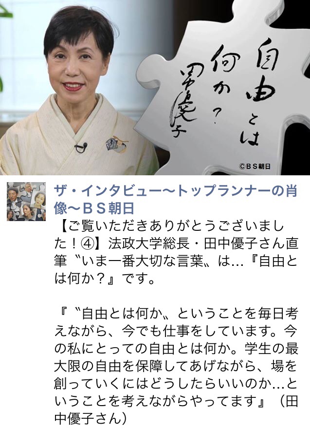 に出演し、「"自由とは何か"ということを毎日考えながら、今でも仕事をしています。今の私にとっての自由とは何か。学生の最大限の自由を保障してあげながら、場を創っていくにはどうしたらいいのか…ということを考えながらやってます」とコメントしたのだ。