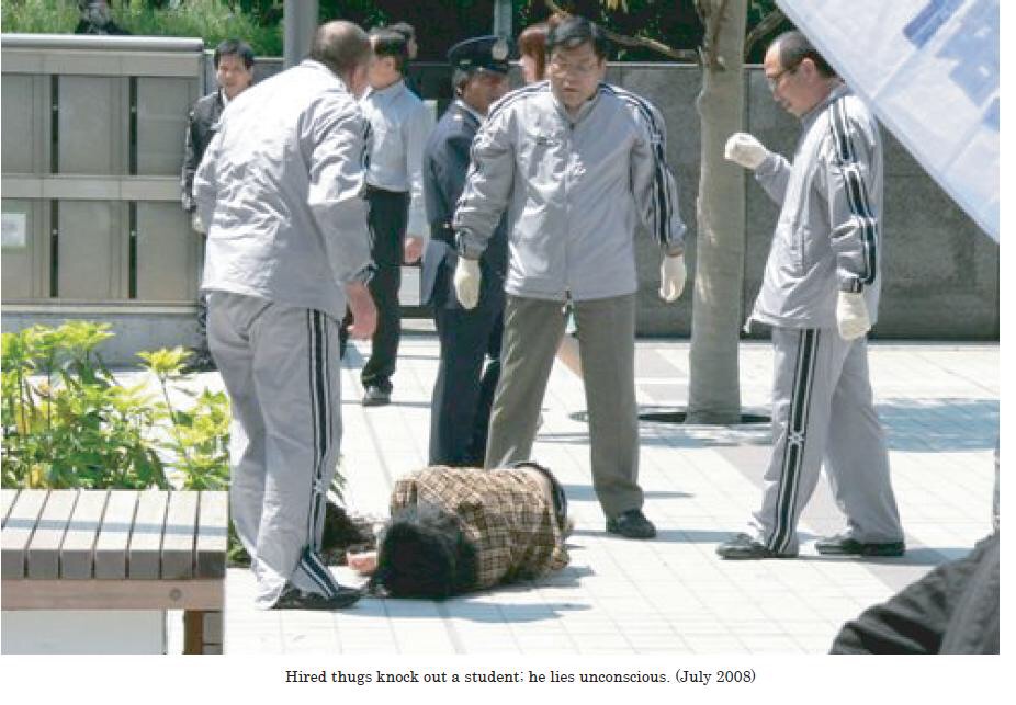 キャンパスでは声をあげる学生に暴力職員が襲いかかり、