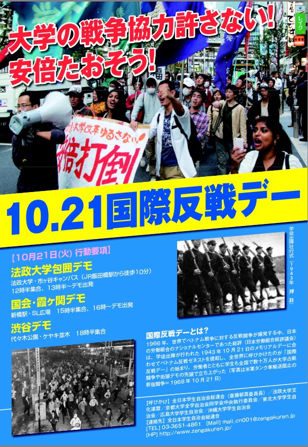 いよいよ、明日は10・21国際反戦デー闘争です!