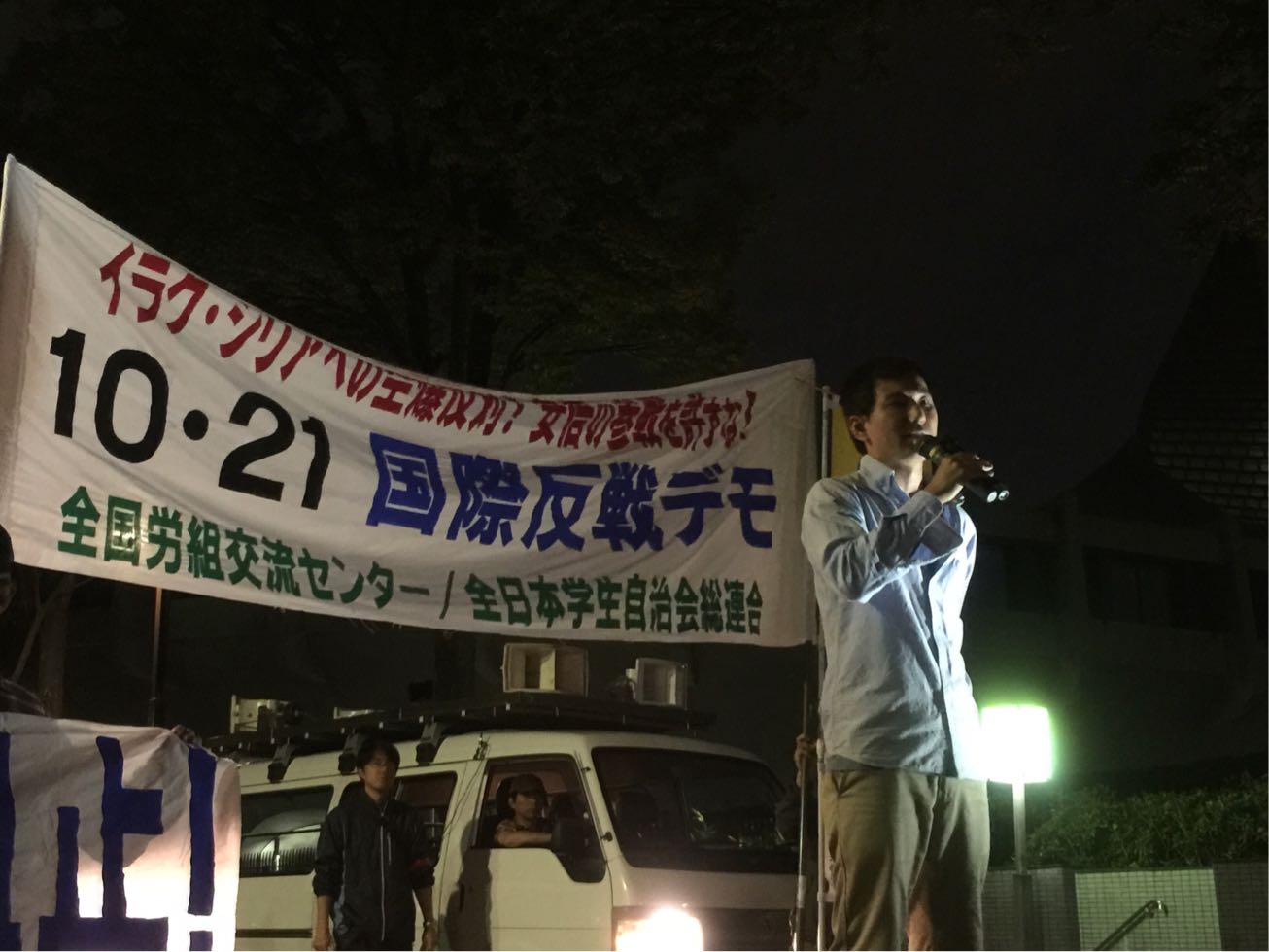 さきほどから言われているように、もはや安倍政権はグラグラです。まともに政治をやることすらできない。その程度の閣僚しか彼にはもういない。これは今の日本帝国主義のまぎれもない真実の姿です。私たちの行動で、必ず倒すことはできます! 本日のデモを力強く打ち抜いて、共に今日の10・21国際反戦デーを世界に轟く闘いにしていきましょう!そして全世界の反戦運動と共に、戦争を本当にとめる行動を、歴史を変える闘いを共につくりだしていきましょう! ありがとうございました。