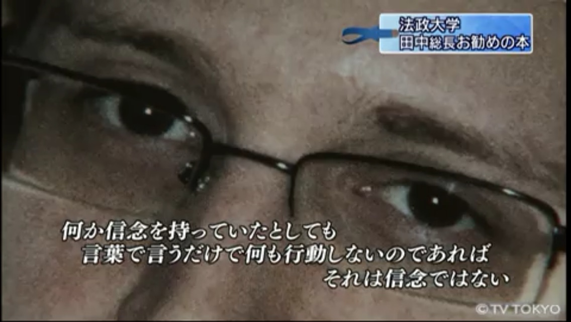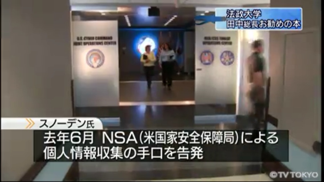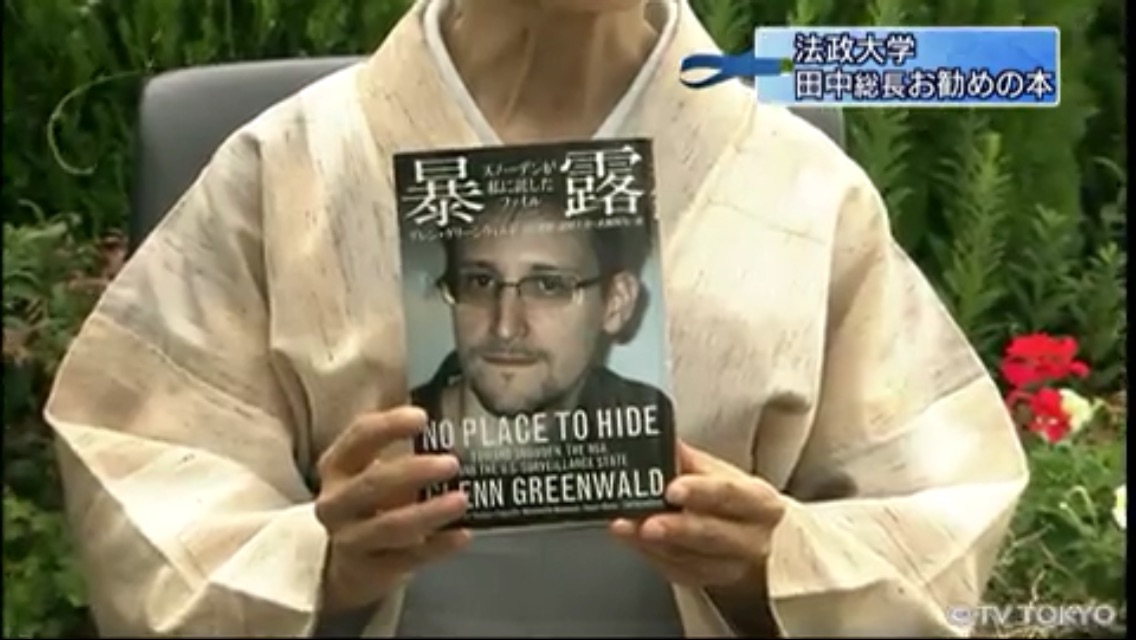 田中総長は自身の「お勧めの本」として、「暴露 スノーデンが私に託したファイル」(グレン・グリーンウォルド著)を紹介。