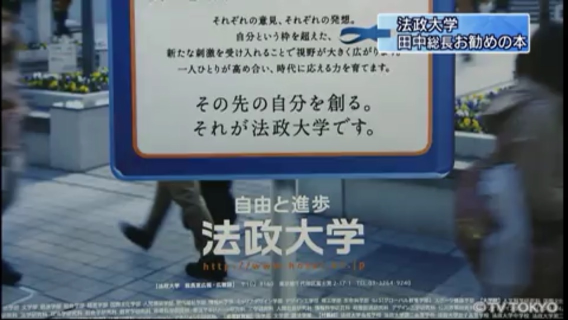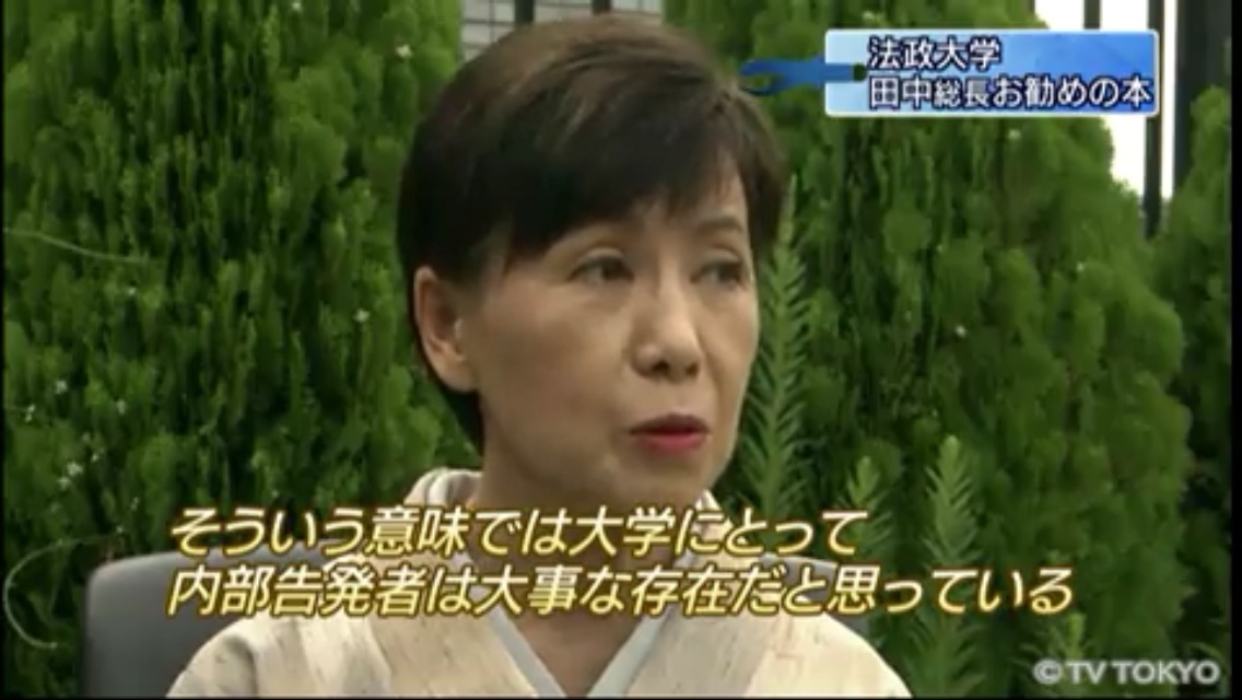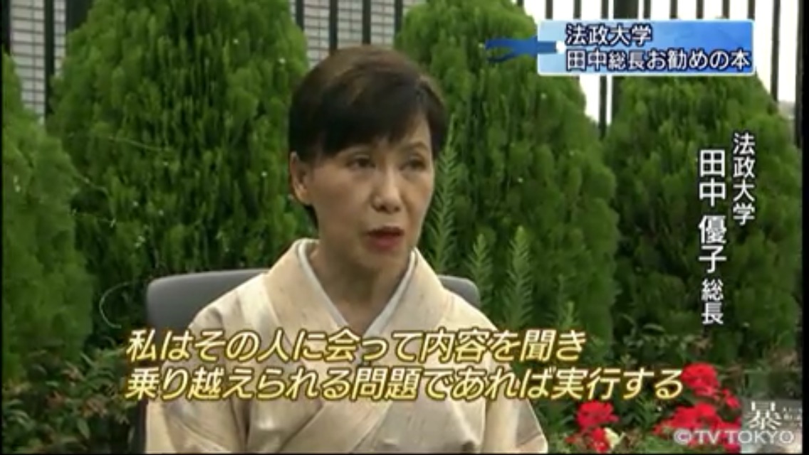 法大当局はホームページで、「田中優子総長が、テレビ東京『ニュースモーニングサテライト』に出演します」と宣伝している。