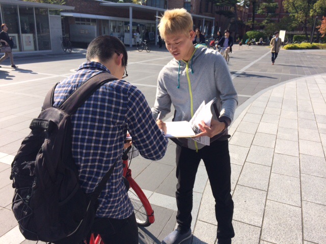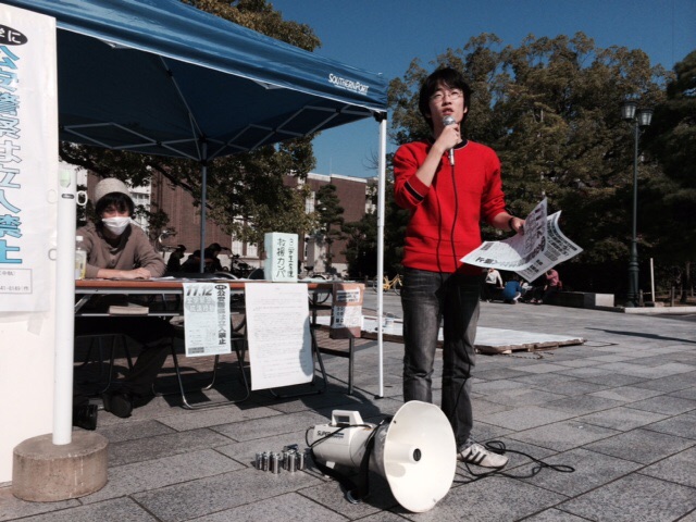 法大文連委員長の武田雄飛丸君が登場‼ 連帯アピール‼