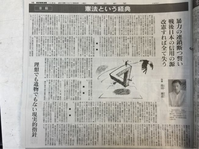 憲法は「暴力の連鎖を断つ誓い」であり、「現実的指針」であり、改憲すれば日本の信用を失うとの持論を展開していますが、破廉恥にも程がある!