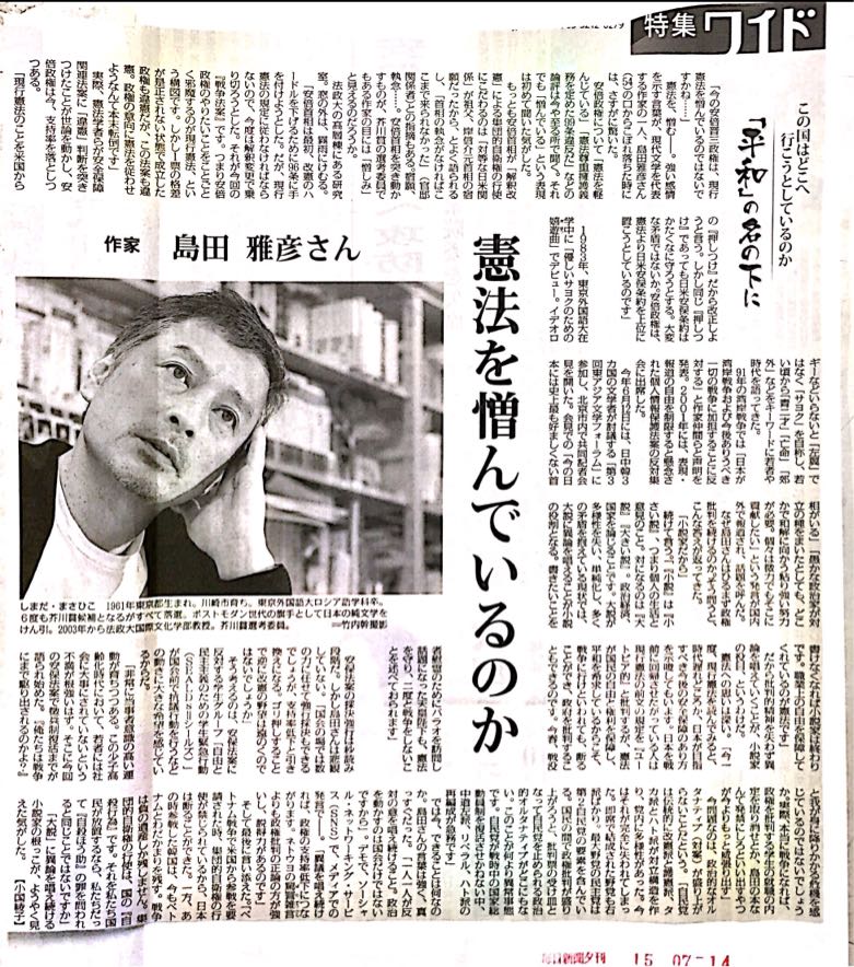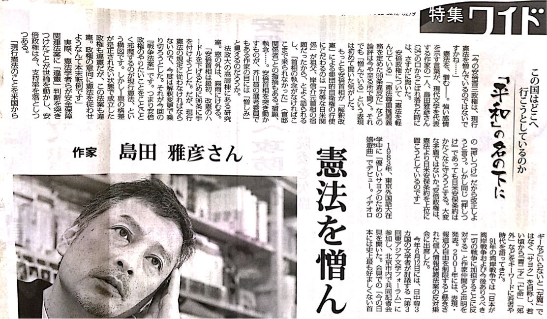 「安倍晋三は憲法を憎んでいるのか」とのことですが、間違いなく憲法を憎んでいるのは島田雅彦自身です。